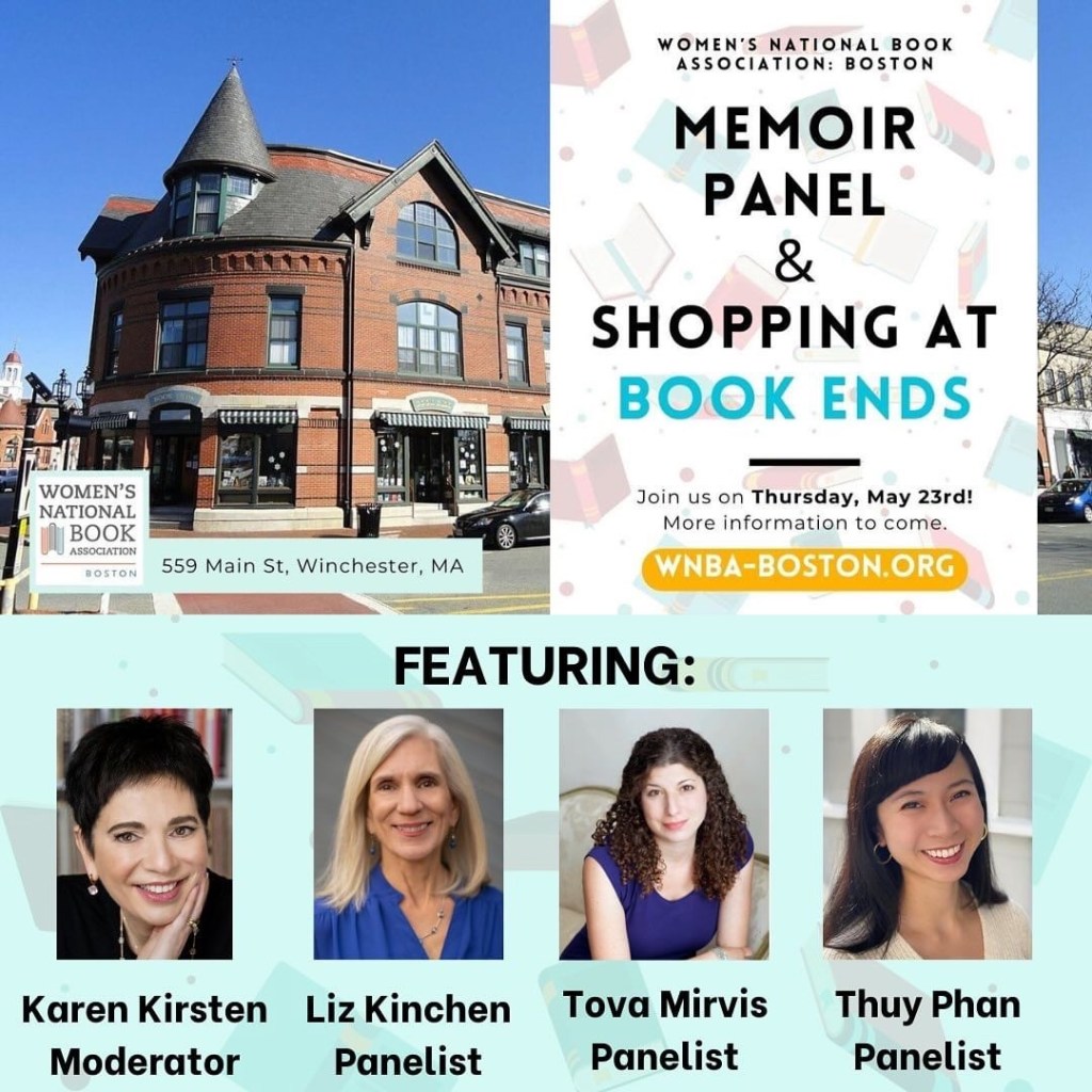 Join the Boston Chapter of the Women’s National Book Association for a panel discussion on the craft and publishing of memoir, featuring local authors Liz Kinchen, Tova Mirvis, and Thuy Phan, and moderated by Karen Kirsten. Come support your local literary community and connect with fellow readers and writers of memoir and creative nonfiction!